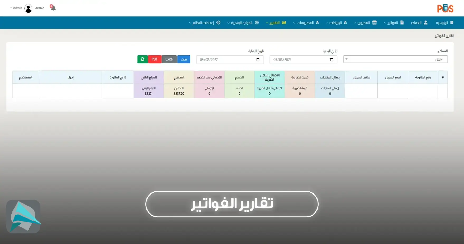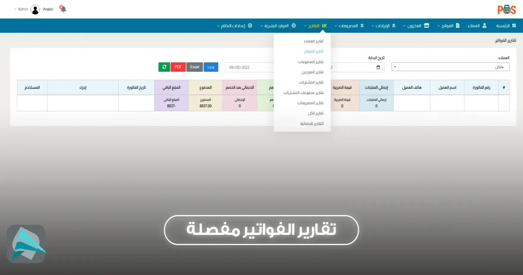 🔹 تقارير وتحليلات تفصيلية (المبيعات، الفواتير، المخزون، والمصروفات) بين فترات زمنية محددة