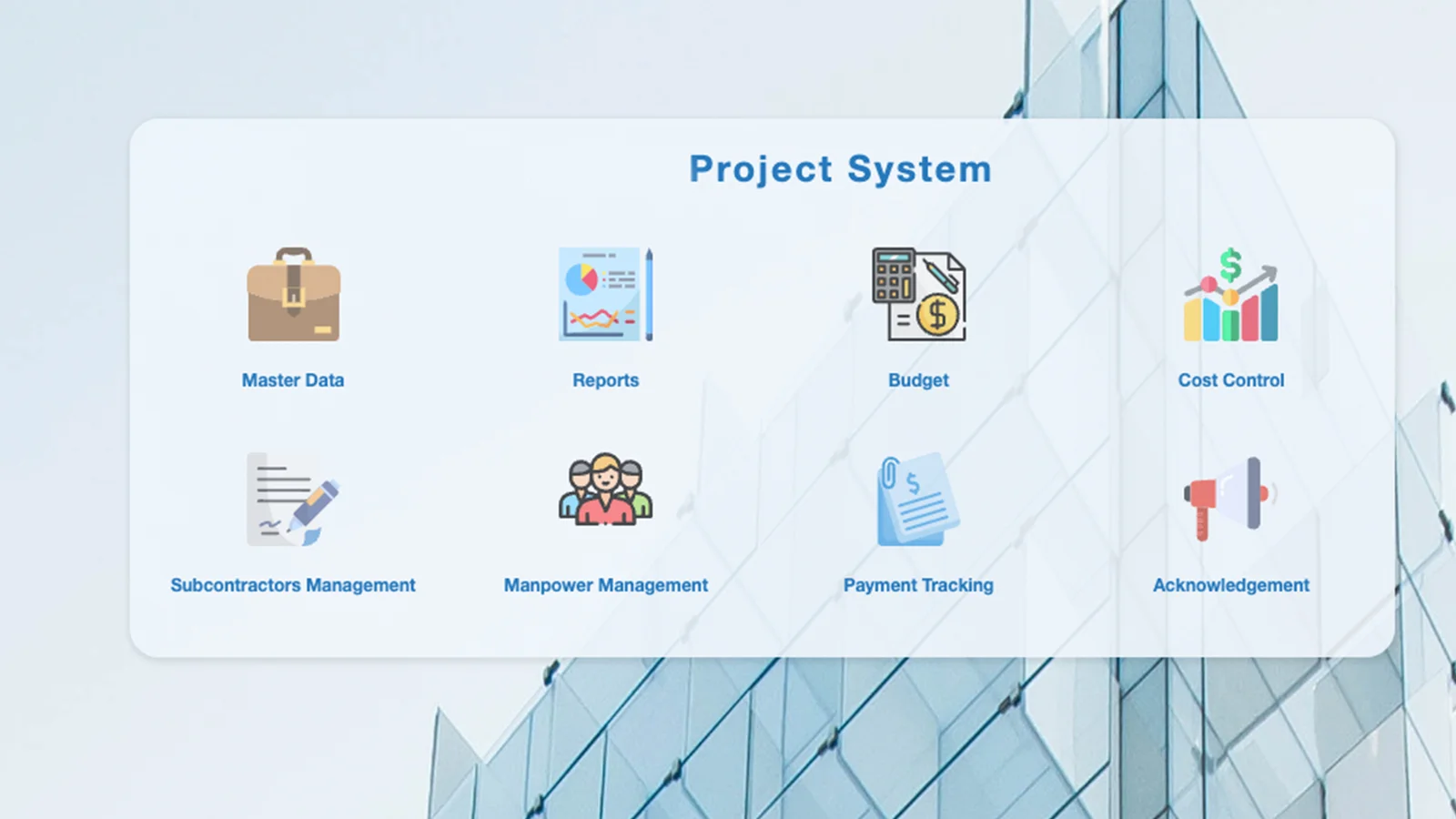Contracting Project Management System This system was developed specifically to serve contracting companies, providing the following functions: Budgeting Control Cost Control Issuing invoices and advance payments to contractors Providing comprehensive real time reports
